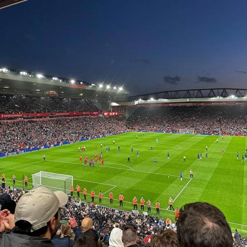 - Liverpool FC: Anfield, joka tunnetaan sähköisestä ilmapiiristään ja ”You'll Never Walk Alone” -kappaleestaan.